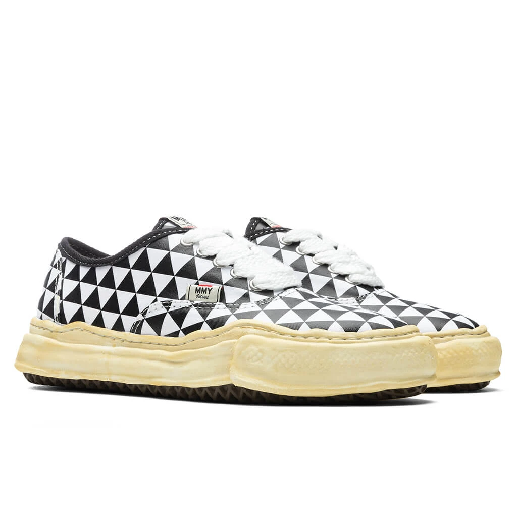The Baker Geometric introduces bold finishes to the iconic Maison Mihara silhouette. The distinct pattern utilizes premium cotton, highlighting the quality of the shoe. The exaggerated sole and laces follow the brand’s signature aesthetic while a post-dye treatment contributes to its distressed finish.