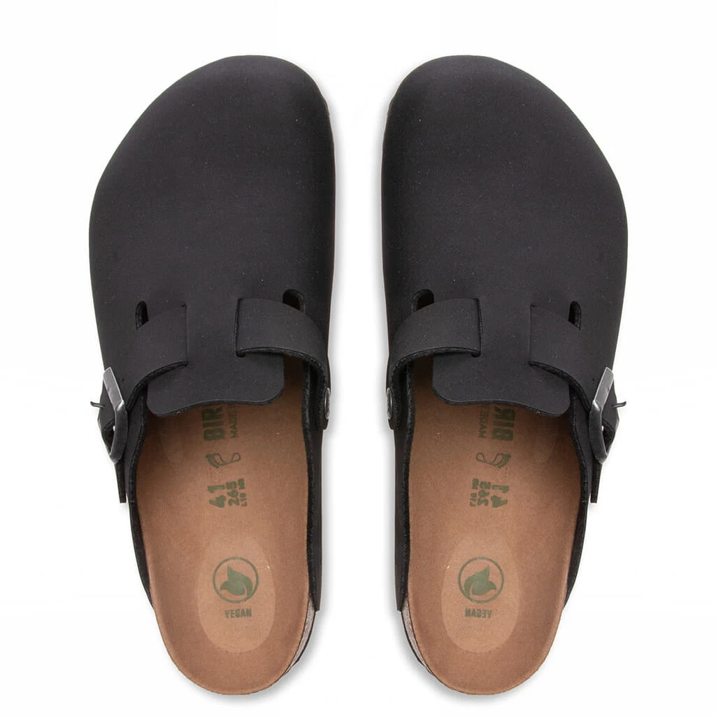 The Birkenstock Wide Boston Vegan Birkibuc makes a statement within any footwear collection. Featuring a Birkibuc upper, the silhouette includes an anatomically shaped cork-latex footbed. The design includes a microfiber footbed lining for additional comfort, while the EVA outsole optimizes its durable qualities. Individually adjustable metal pin buckles are placed within the strap, completing the overall silhouette.