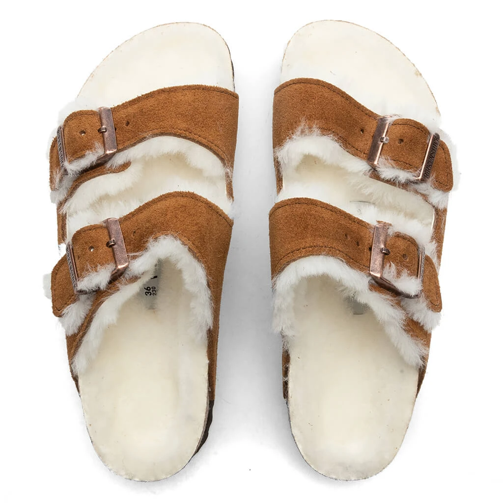 Birkenstock reimagines the traditional Arizona model with a Shearling lining for a luxe and smooth experience. A cork-latex footbed features an EVA sole for comfort which works alongside the suede upper straps. Functional details include adjustable closures and a cork-latex footbed for optimal cushioning.