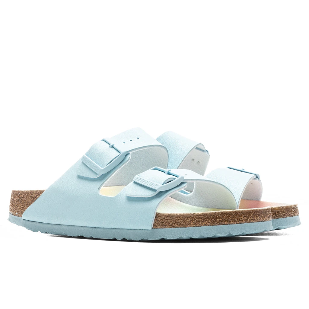 The iconic Birkenstock legacy moves forward with the Womenโs Narrow Arizona Vegan Birkibuc. Featuring a Birkibuc upper, the silhouette incorporates a two-strap design with a microfiber footbed lining. The anatomically shaped cork-latex footbed provides premium comfort, while the two straps each include individually adjustable metal pin buckles. The EVA outsole offers optimal traction and durability during all times of wear.