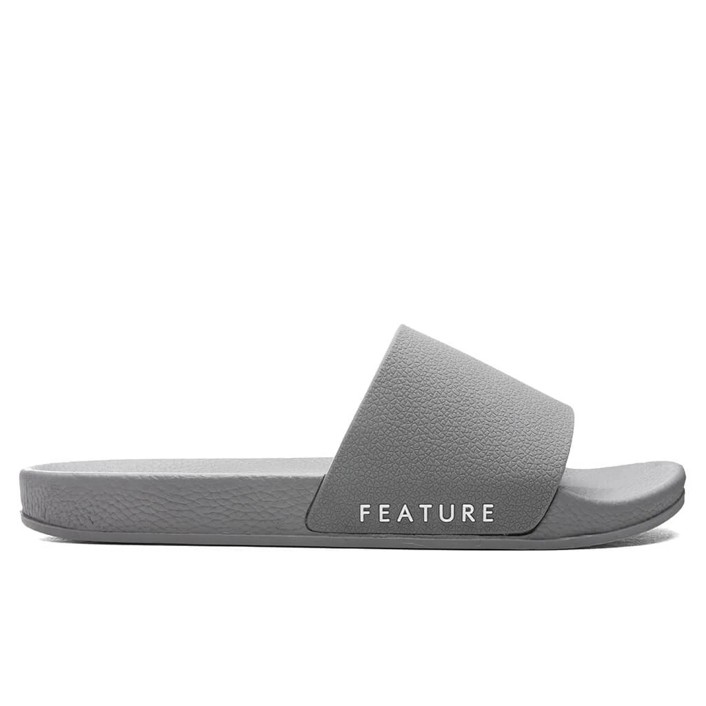 Perfect for lounging by the pool or relaxing at the beach, the exclusive FEATURE Cabana Slides make a statement within any footwear collection. Composed of complete rubber, these single-strapped slides are water-resistant and ideal for all outfit types. Embossed FEATURE branding can be seen at the highly comfortable footbed in addition to the side of the front strap. A bag is included with the FEATURE Cabana Slides, providing you with the opportunity to bring them with you as you please. Optimal durability and traction are provided within the treaded rubber outsole.