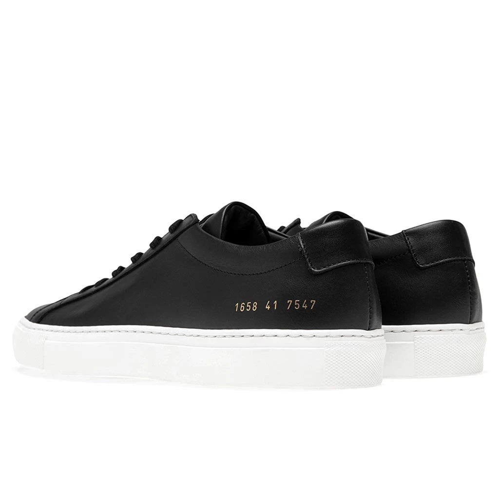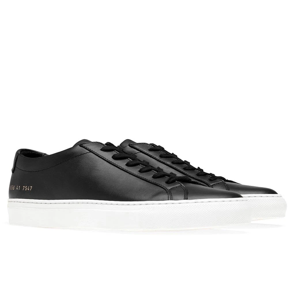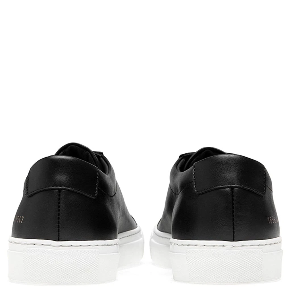 Founded by Prathan Poopat and Flavio Girolami in 2004, Common Projects are best known for their signature gold stamp at the heel highlighting style and size. Assembled in Italy using the highest-quality materials, Common Projects pushes the standard in luxury footwear. Pictured is the Common Projects Achilles Low White Sole in Black.