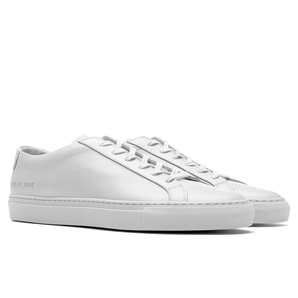 Common Projects introduces their latest footwear offering, the Original Achilles Low. This premium sneaker spotlights a refined aesthetic with its leather upper and leather lining. Both comfortable and elevated in its design, the silhouette incorporates gold foil branding at the heel. Detailed stitching is placed throughout, while the cotton laces offer a secure fit. The rubber outsole underneath completes the design.