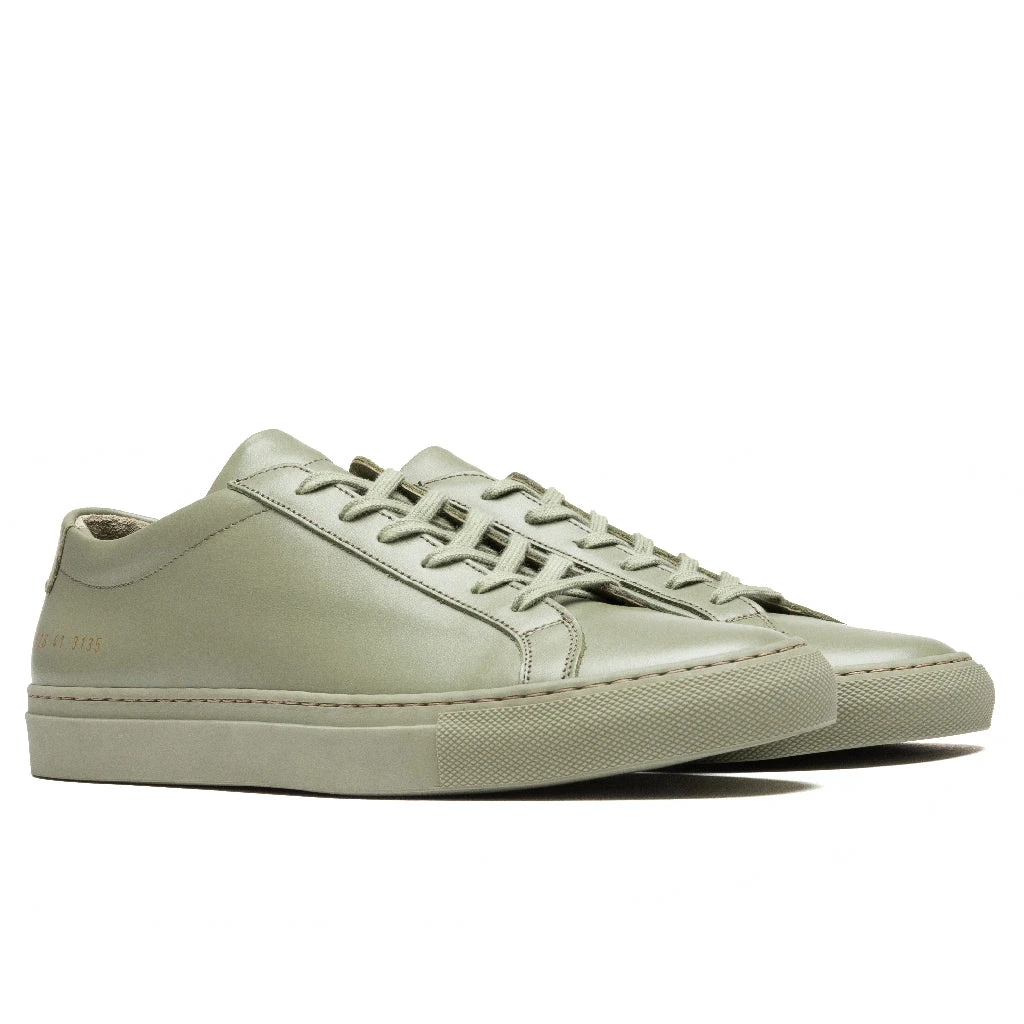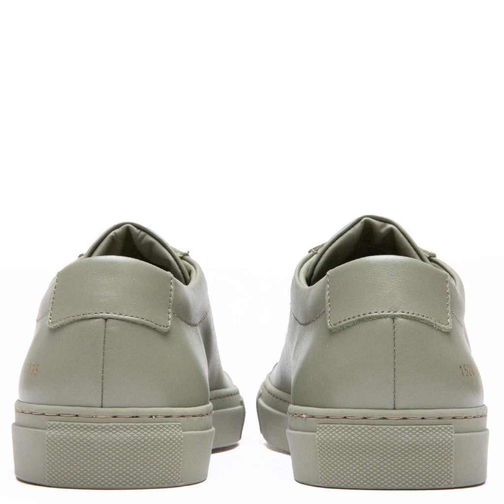 Founded by Prathan Poopat and Flavio Girolami in 2004, Common Projects are best known for their signature gold stamp at the heel highlighting style and size. Assembled in Italy using the highest-quality materials, Common Projects pushes the standard in luxury footwear. Pictured is the Common Projects Original Achilles Low in Moss.