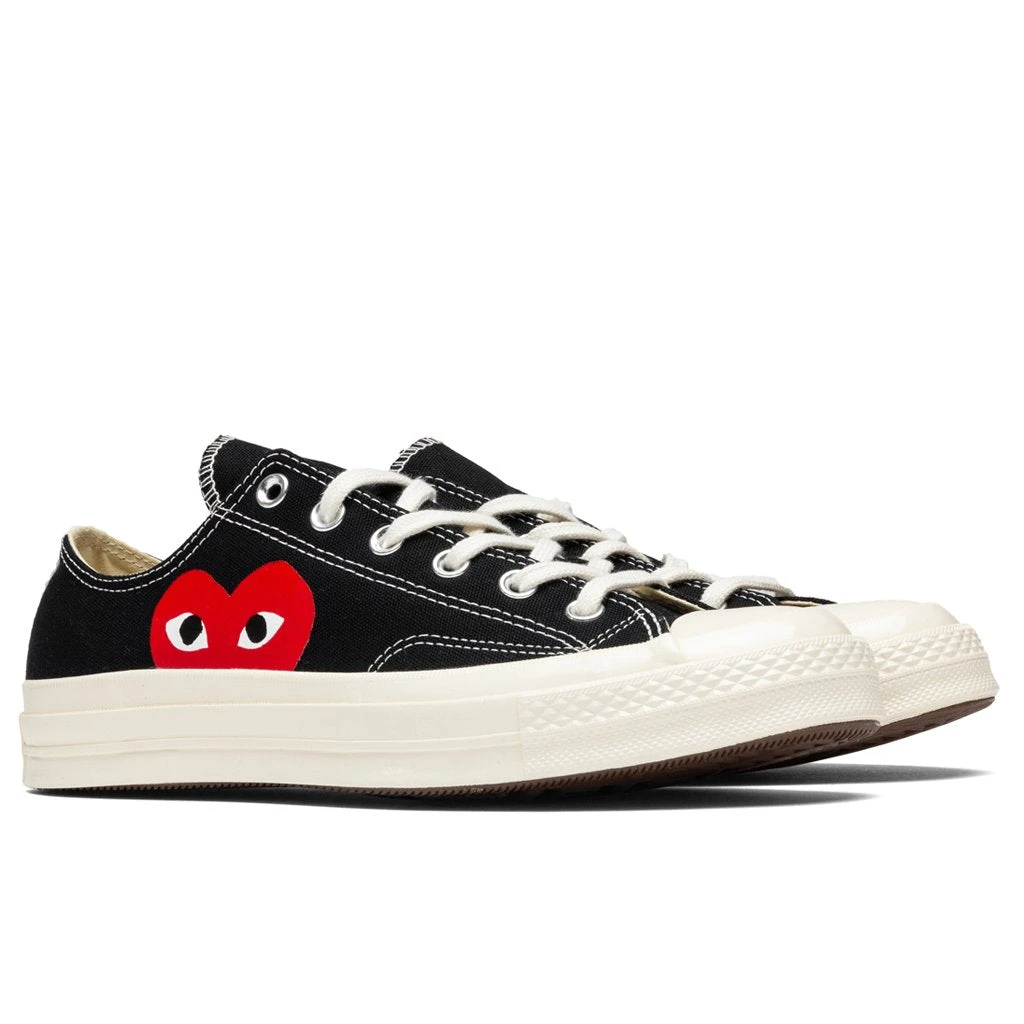 The partnership between Converse and Comme Des Garçons PLAY has made an impact worldwide. Through its traditional sneaker silhouette that is incorporated with the signature Comme Des Garçons bug-eyed red heart motif. The All Star Chuck ‘70 features a traditional full-lace closure and rubber toe that pays homage to its signature design. A rubber outsole completes the design, providing a durable finish.