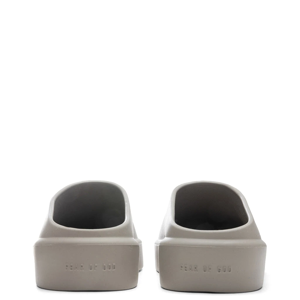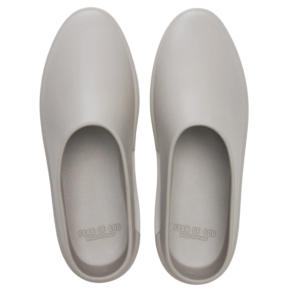 The Luxury Los Angeles-based label Fear of God introduces The California. Made entirely from innovative foam rubber produced in Italy from patented XL Extralight Technology. The Extrabounce compound is light and allows for greater flexibility, comfort, and durability. Backless and made for a slip-on design, the sculptural aesthetic emphasizes functionality by incorporating an inner vent to provide maximum airflow, while the raised tread provides optimal traction and durability. Fear of God branding at the heel ties together the sleek aesthetic.