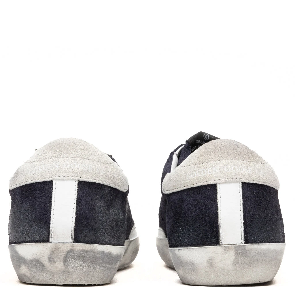 Associating their name with luck, Golden Goose has inspired the fashion industry with their โworn-inโ Italian workmanship. The well-known Golden Goose star motif is colored in a bright white – textured with a suede overlay. The monochromatic texture against the base and logo give a dimensional look. The laces hold true to Golden Goose standards by using a black bold text against an all-white stitched lace.