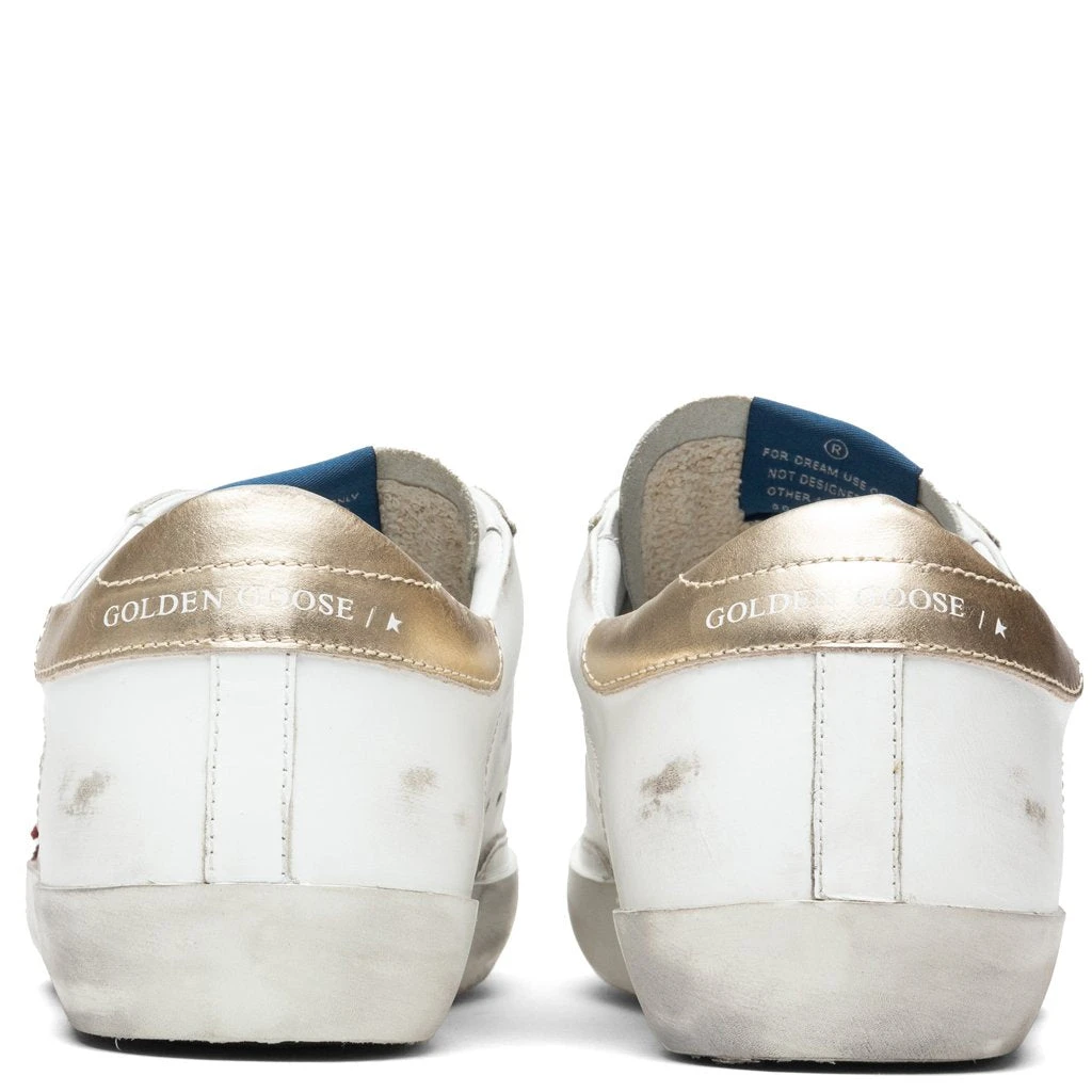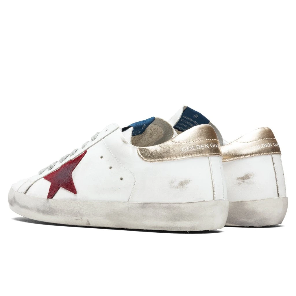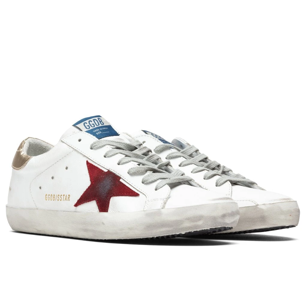 Golden Goose was founded in 2000 by husband and wife Alessandro Gallo and Francesca Rinaldo. The two had a desire to blend West Coast casualness and Italian craftsmanship on retro silhouettes for men and women. Pictured is the Golden Goose Superstar in White/Dark Red/Platinum.