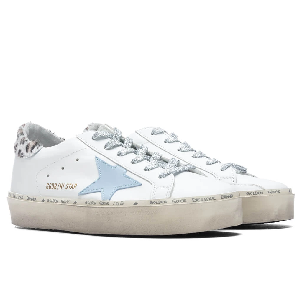 Italian footwear label Golden Goose’s Women’s Hi Star upgrades the traditional pair of sneakers with its leather upper along with its signature bold branding placed at the side. A distressed rubber platform sole is placed for durability, while additional branding is handwritten along the sides. A signature star appears at the side panel, while the leopard-printed heel tab and rubber outsole tie together the aesthetic.