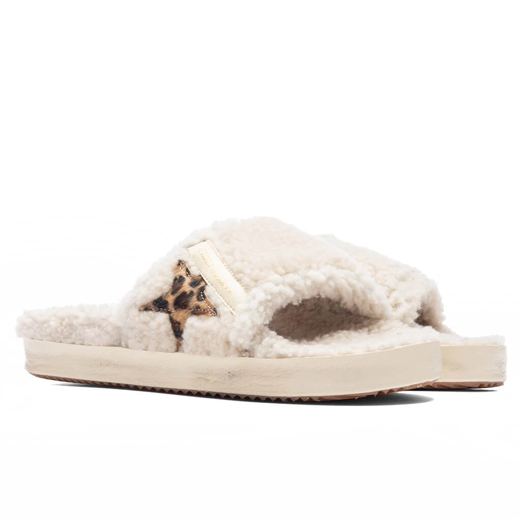 Composed of shearling at the strap and footbed, the Golden Goose Women’s Shearling Poolstar makes an impression. The design features a laminated leather star at the sides, while the leather insert adds optimal comfort. The rubber outsole completes the look.