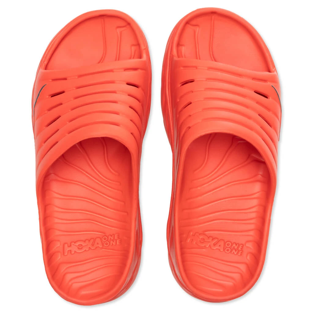 Recover your feet after a run or long day on your feet with the Hoka One One Recovery Slide. Receiving the same oversized midsole and Meta-Rocker geometry as other Hoka One One offerings, this slide design offers optimal comfort and support where you need it the most. The soft EVA upper paired with the dual-layer construction is durable, while the early stage Meta-Rocker and EVA midsole tie together the silhouette.