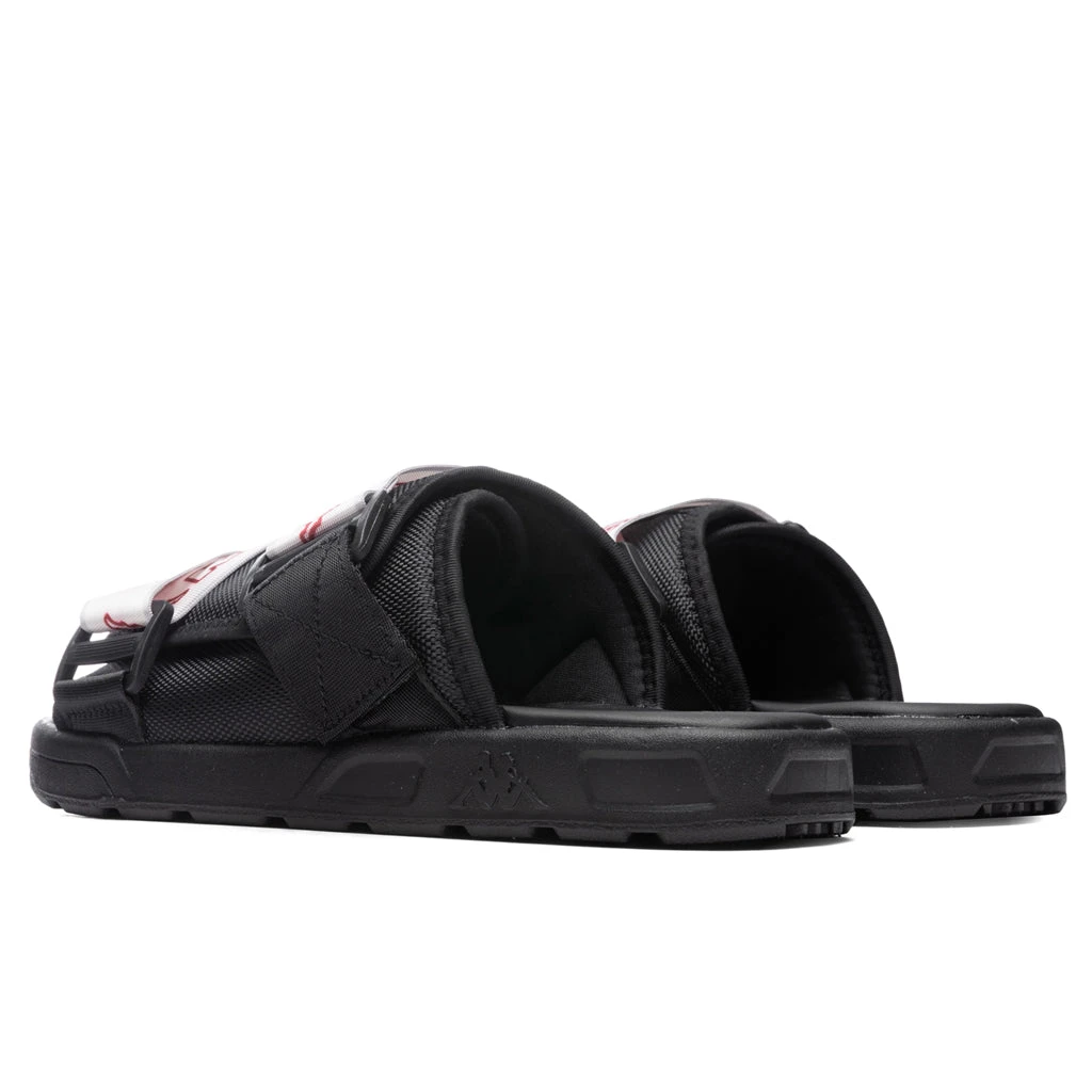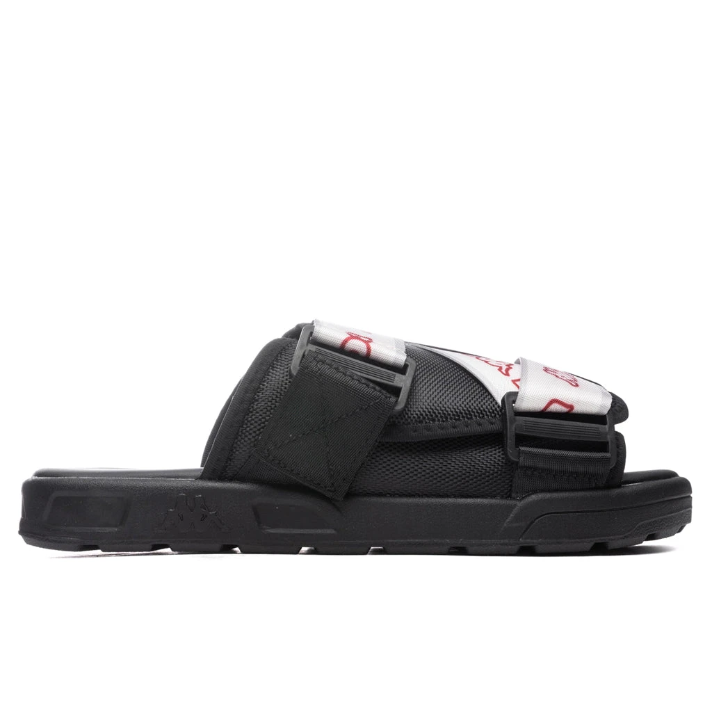 Upgrade your current pair of slides with the Kappa Logo Tape Kalpi Slides. Featuring a nylon upper, synthetic material is placed within the durable outsole. The strap closing features an Omini and Banda logo along with repeating Kappa lettering. An Omini logo also appears at the footbed, completing the overall look.