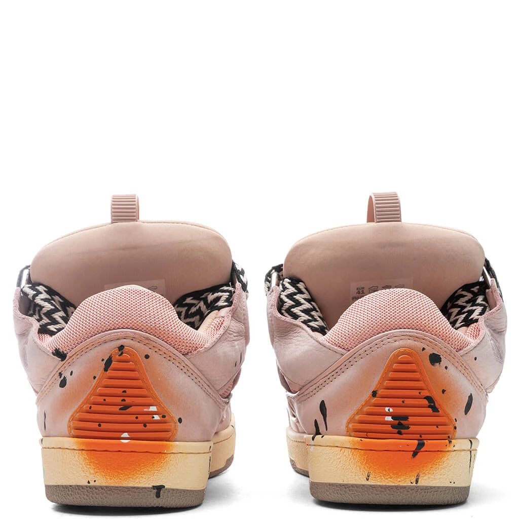 Inspired by the ‘90s, the Lanvin x Gallery Dept. II Curb Sneakers takes into account both brands’ aesthetics. Featuring a blend of nappa calfskin, suede, and mesh within the upper, the premium silhouette includes a padded tongue and curved metallic eyelets. The quilted tongue is treated with an iconic Lanvin label and an embossed Mother and Child logo. Paint splatter detailing is seen at the toe box and throughout the midsole, while the rubber outsole adds a durable touch. The satin ribbon laces finish the look.