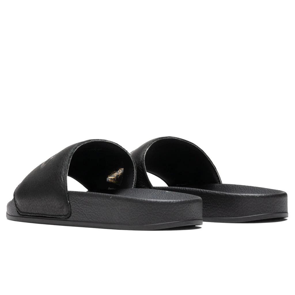 Heron Preston is the true embodiment of an artist born of the post-internet generation. Multi-faceted and genre-bending, he has become a cultural icon in youth culture, known for his bold aesthetics. His impressive bodies of work is a commitment to innovation, experimentation and unpredictability. Pictured is the Heron Preston Logo Slider in Black/Black.