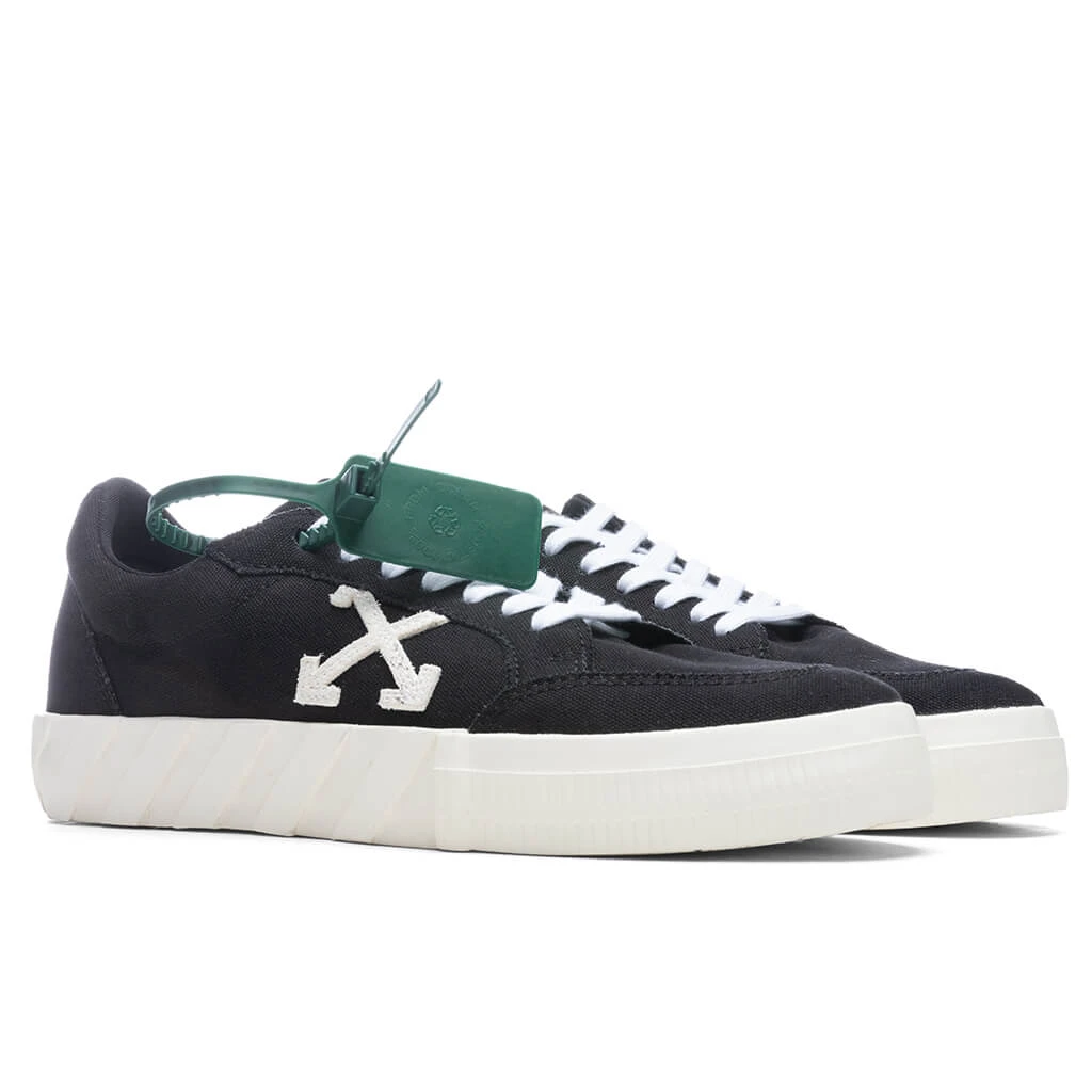 Upgrade your sneaker collection with the latest offering from Off-White. The Low Vulcanized Canvas features a cotton-cut upper that encompasses the monochrome design. Featuring a front lace-up fastening, the sneakers include a logo patch at the tongue along with a signature zip tie tag and arrows motif. The fabric comprises the lining, while the branded insole and flat rubber outsole tie together the rest of the silhouette.