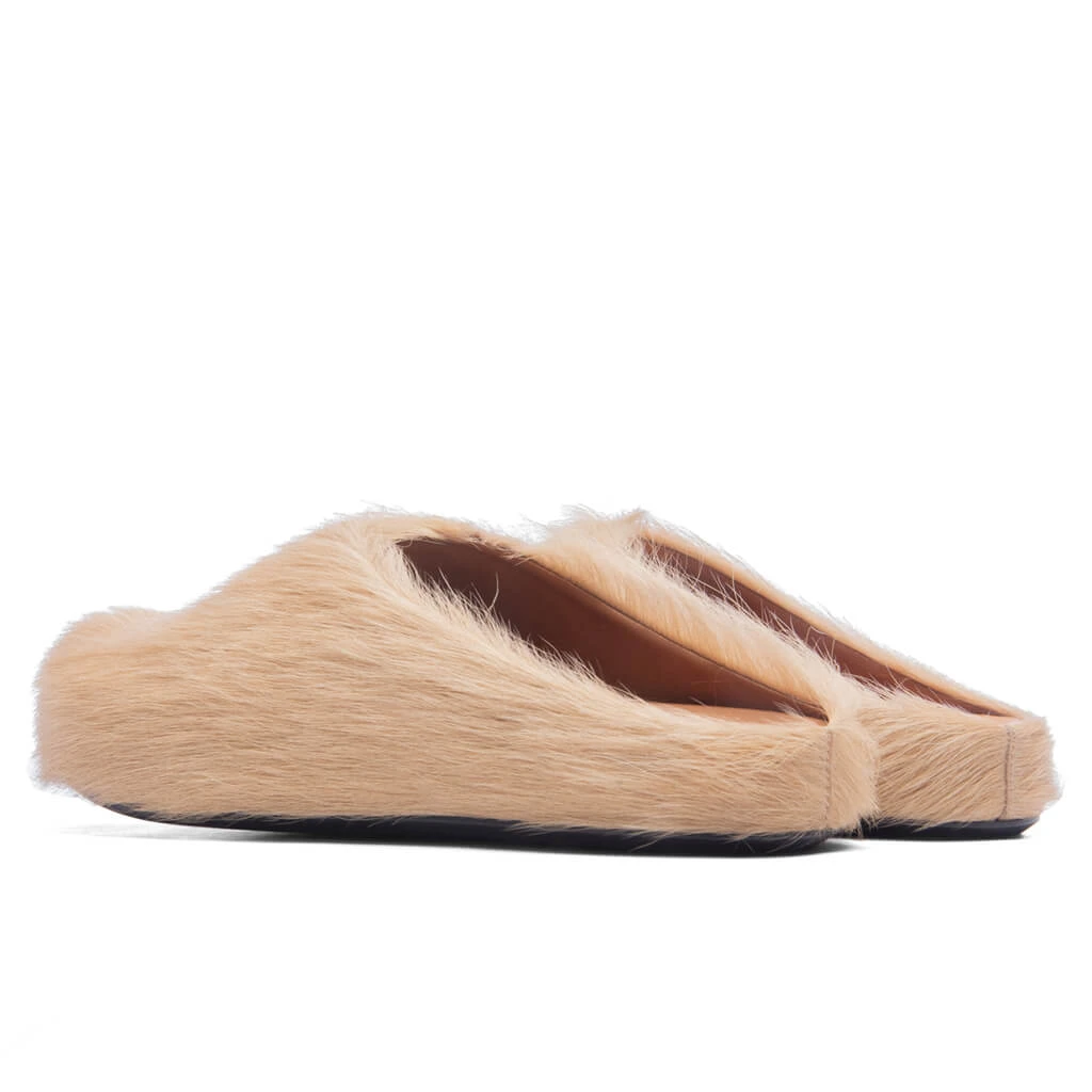 Elevate your footwear rotation with the Marni Fussbett Sabot. Featuring a slip-on design, the silhouette spotlights a calf hair upper along with a leather anatomical insole for added comfort. A ribbed rubber outsole underneath offers a durable and supportive finish.