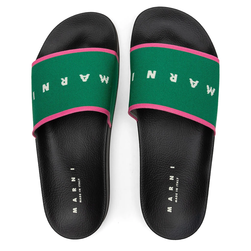 Incorporate an elevated footwear silhouette into your weekly rotation with the Rubber Slide from Marni. Crafted in Italy, these slip-on slides feature a cotton jacquard logo on the strap, while the molded footbed and branded insole offer both additional comfort and elevation. The silhouette is tied together with a rubber outsole for optimal traction during all times of wear.