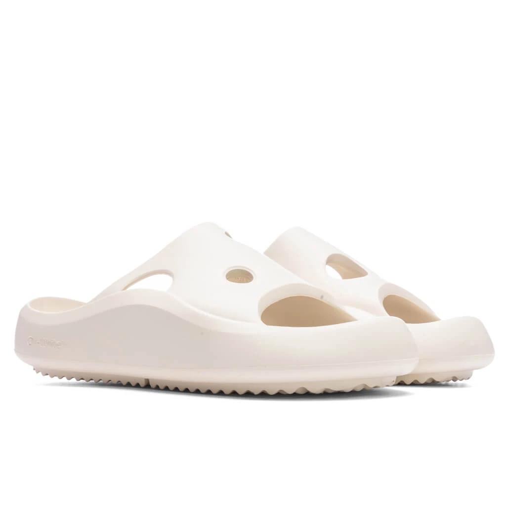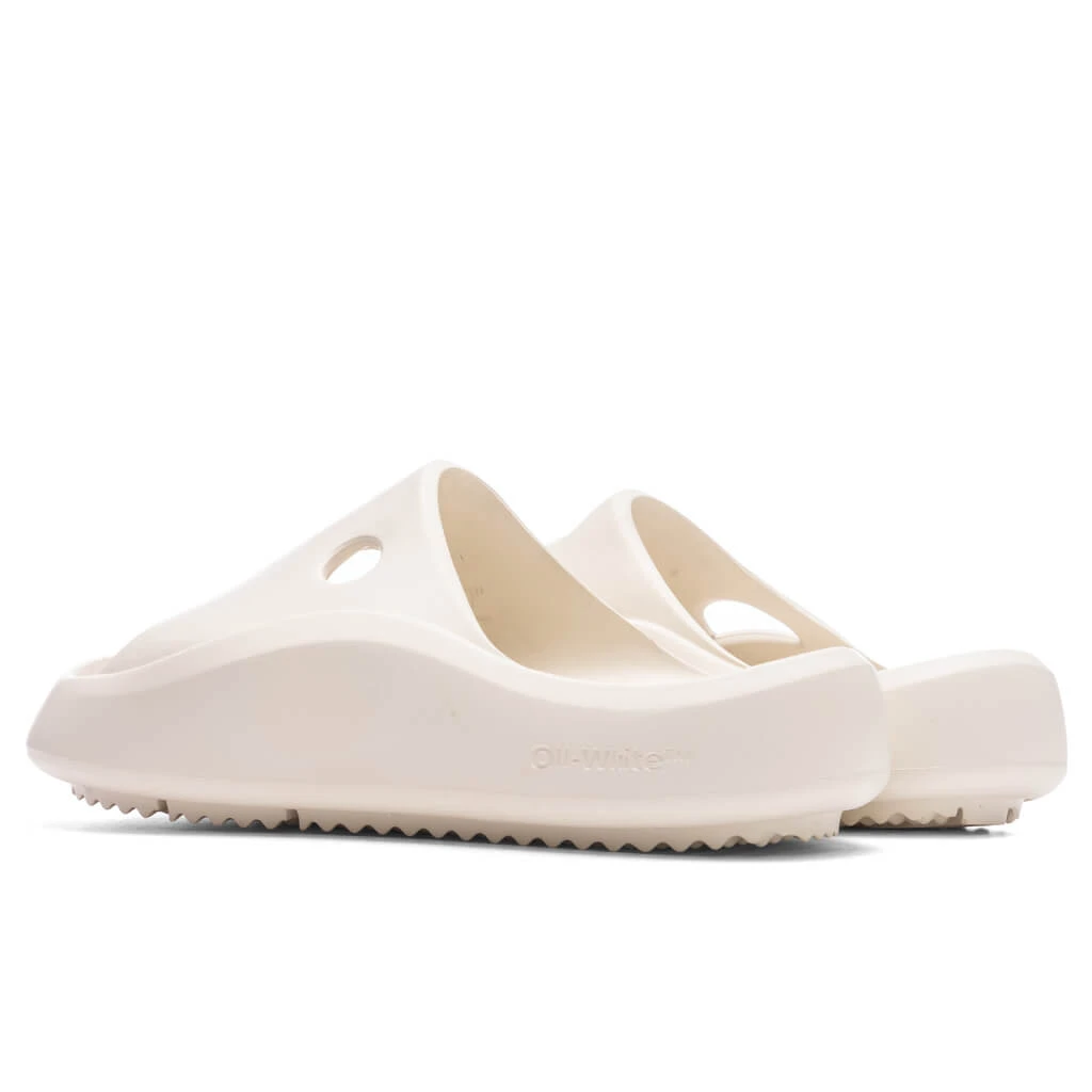 The Off-White Meteor Rubber Slider makes an impression on any streetwear footwear brand. Composed of rubber, the silhouette spotlights a slip-on style along with punched holes at the strap. Embossed branding resides at the footbed, while the treaded rubber outsole finishes the look.