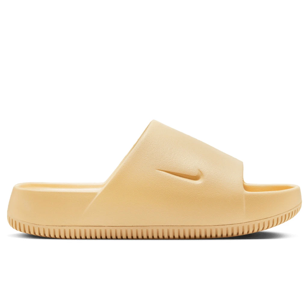 The Nike Women’s Calm Slide makes an impression with its contoured foam construction that helps keep the foot in place. The water-friendly shoe makes an impression with its subtle texture pattern on the footbed that adds grip so feet can stay in place. The full-length rubber outsole and embossed Nike Swoosh wrap up the look.