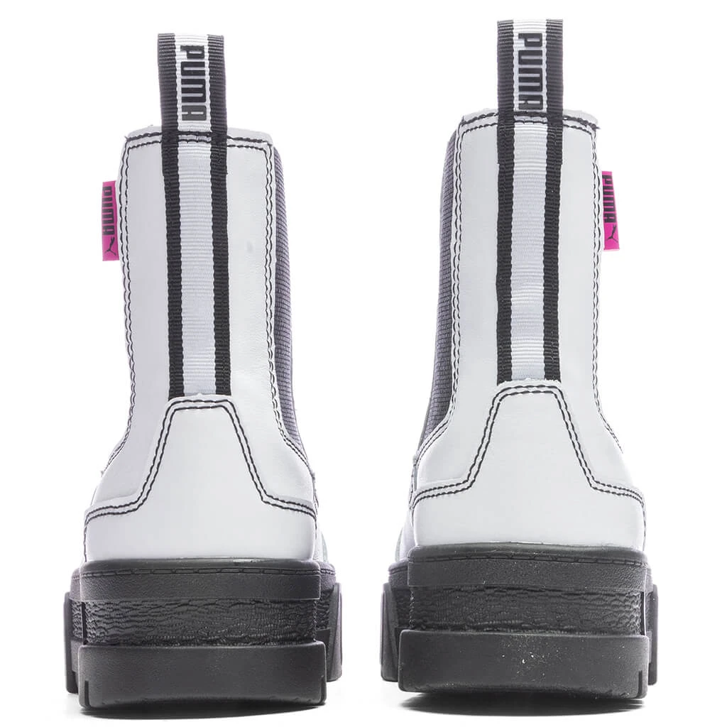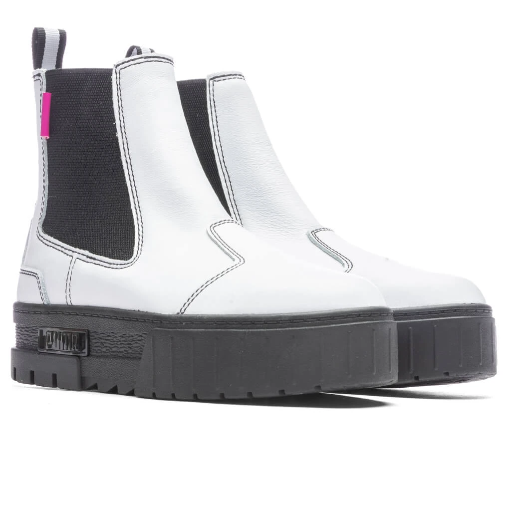 Taking on a premium aesthetic, the Puma Womenโs Mayze Chelsea Pop makes an impression with its supple suede upper that offers a luxurious touch. Elastic panels and pull tabs are also seen for easy on and off, while the cushioned insole provides optimal comfort with each step. Contrasting rubber tooling adds an edgy aesthetic, while the mid-calf design is finished with a sawtooth-patterned rubber outsole for optimal traction.