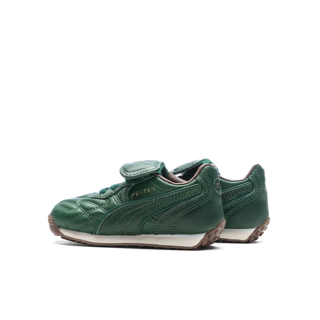The FENTY x PUMA Avanti is a sport-fashion style inspired by the icon from PUMA’s archives. The Avanti’s football-inspired elements – like a stitched leather upper and gum sole – are given a fashionable twist with a monochromatic finish and debossed FENTY x PUMA branding.