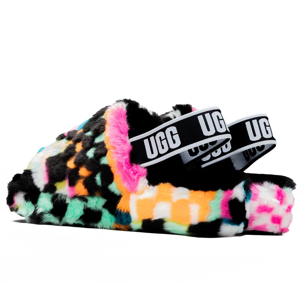 The classic Fluff Yeah Slide is revamped in its latest iteration from UGG. Composed of a signature faux fur shearling upper, the design spotlights an all-over checker print for a bold aesthetic. The elastic strap is treated with an UGG graphic, while the lining is made up of signature UGGplush, upcycled wool, and lyocell. The sheepskin insole and printed faux-shearling wrapped midsole make another impression. The woven label and molded rubber outsole finish the rest of the look.