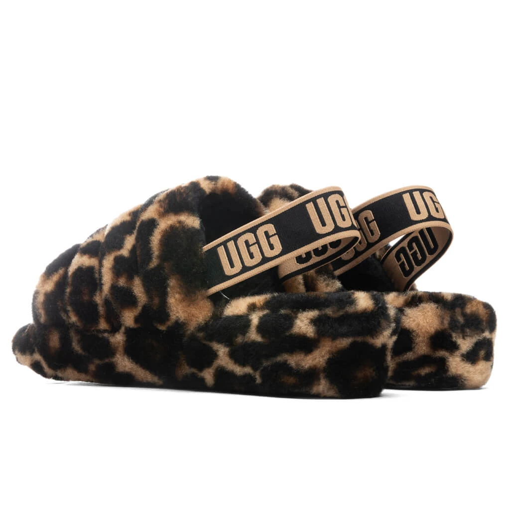 Make a statement while staying comfortable with the UGG Women’s Fluff Yeah Slide Panther Print. The updated silhouette features curly UGGplush material for optimal comfort, while the elastic backstrap secures the design for easy slip-on and removal. With a molded rubber outsole, the silhouette is comfortable and durable in its construction.