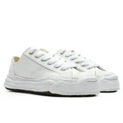 Maison Mihara’s essence is distinctive while also classic. As seen in the Wayne Low, the sneakers’ upper material is cow leather and is met with a rubber sole, which the designer himself modeled with clay. The rubber outsole is made up of a distressed finishing. The sneakers are complete with flat, chunky laces for a secure fit.